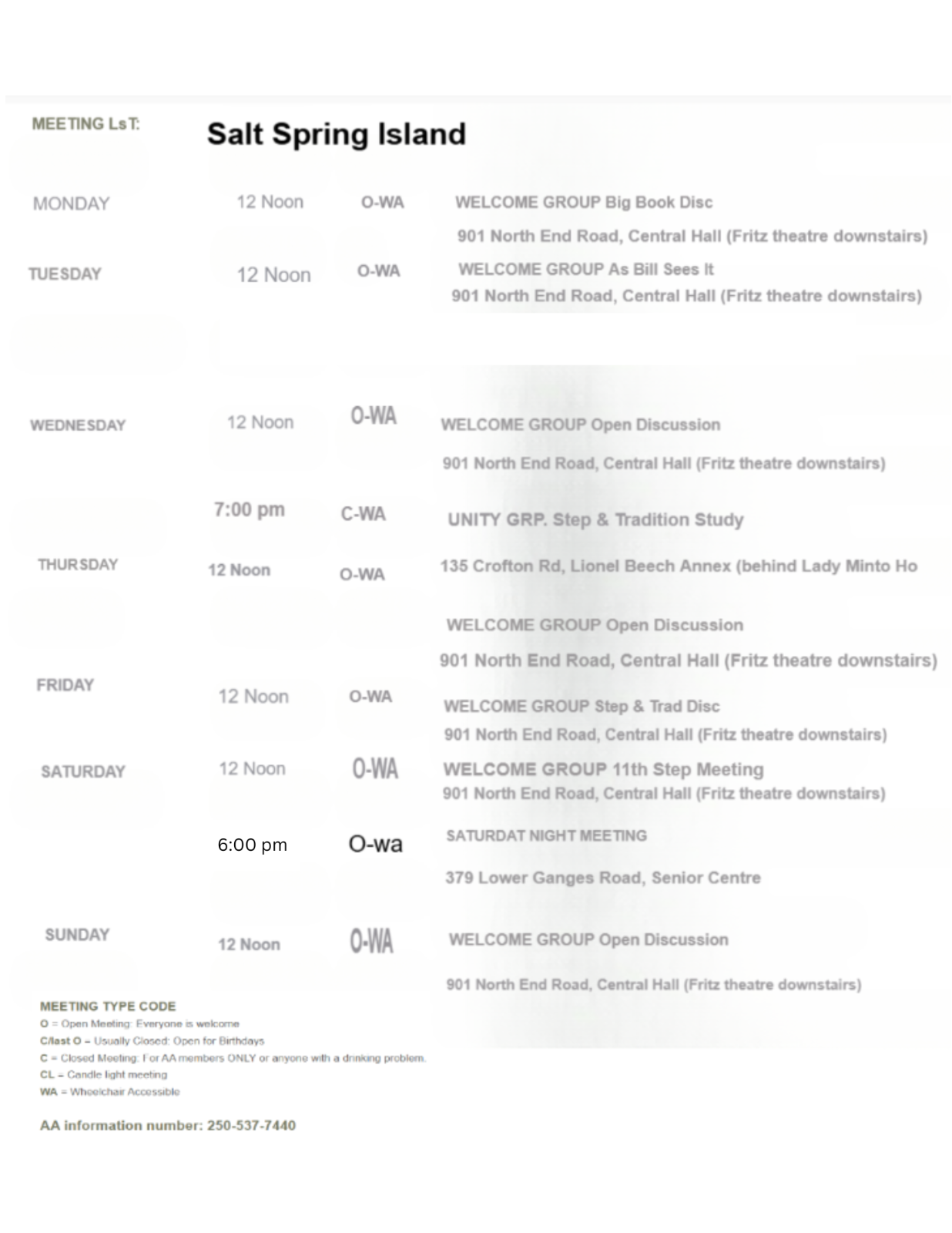Hours: Meetings are nightly at 7 pm and Sundays at 10 am