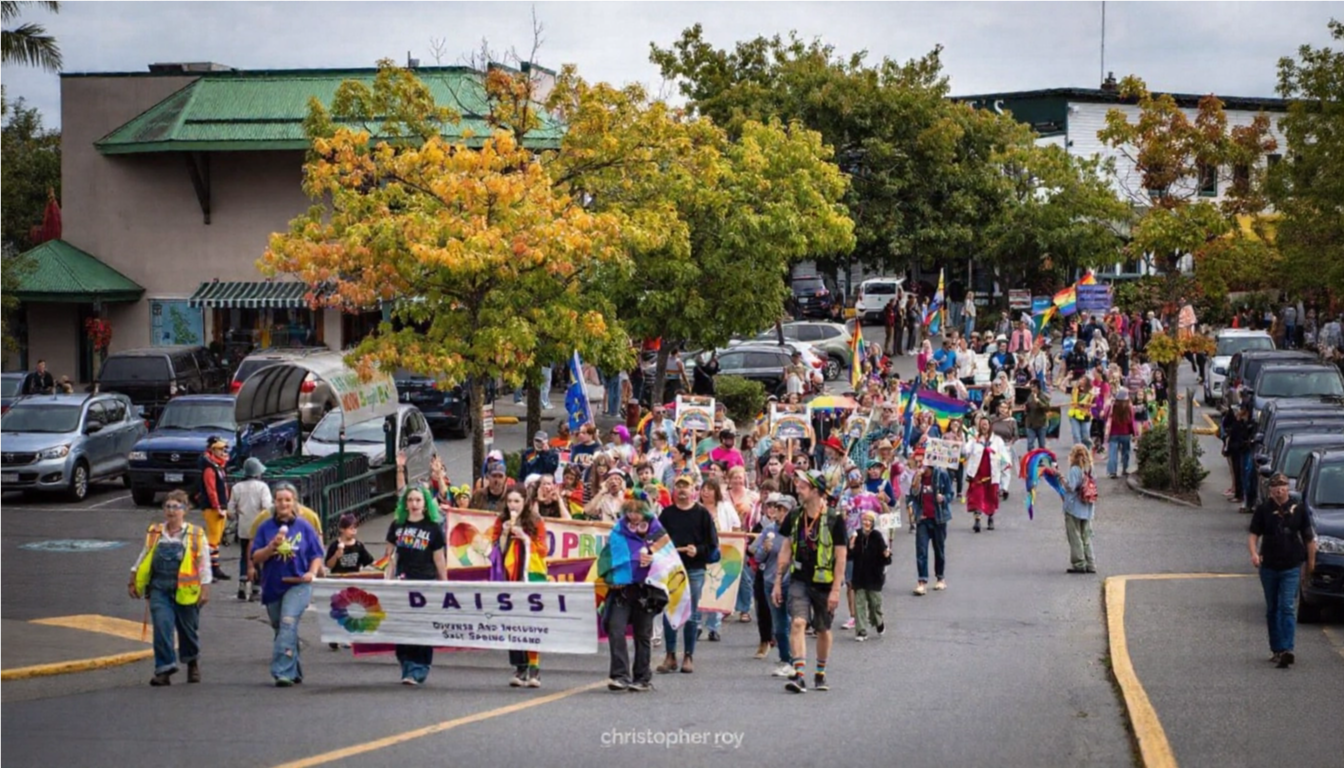 We are a group of lesbian, gay, bisexual, transgender, queer, and questioning people, and allies, who live on or off Salt Spring Island and are interested in issues related to education, arts, and support for the LGBTQ2SIA+ community. We also host parties as well as spectacular Pride events annually!